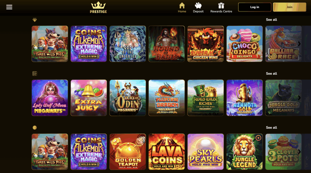 Casino Prestige is a brand new online casino to be launched in 2025, the site features a great range of high RTP slots with exclusive features and huge wax win potentials. A favourite section on the site for us is the exclusive slots, we love to see a casino partnering with providers for exclusive games, it really does boost the Prestige feel and brand. In the review below we will give our honest expert views on everything the site has to offer, lets take a look:
